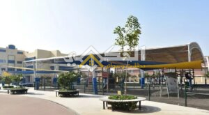 كما تعمل مظلات حديدية علي حجب أشعة الشمس المباشرة مما يساعد الطلاب والطالبات علي ممارسة أنشطتهم المعتادة داخل فناء المدرسة بكل راحة واسترخاء واطمئنان.